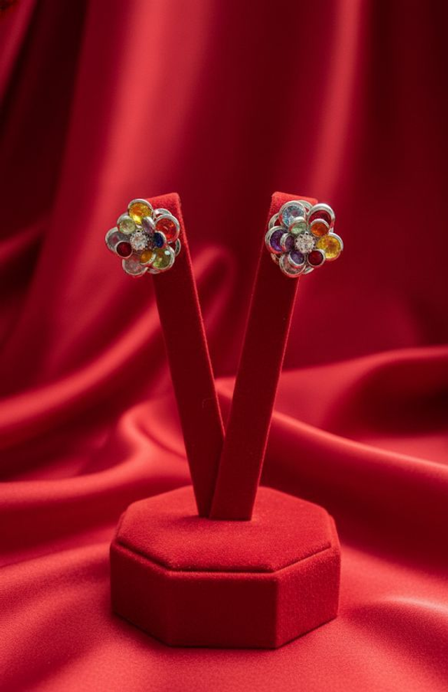O Brinco Bloom Élégance traz a delicadeza de uma flor iluminada por cristais coloridos que refletem beleza em cada movimento. Charmoso, leve e cheio de vida, ele é aquele toque de feminilidade que transforma o visual com sutileza e brilho.